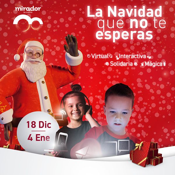 “La Navidad que no te esperas” es poder hablar con Papá Noel y sus Duendes o con el Paje Real y los propios Reyes Magos. También hacerte y que te manden por mail la tradicional foto navideña junto a Papá Noel y sus renos, gracias a la Realidad Aumentada. O disfrutar de la magia, los cuentos y el circo, esta vez desde casa. “La Navidad que no te esperas” es el nombre bajo el que el Centro Comercial Mirador de Cuenca arranca este viernes día 18 su tradicional programación de actividades navideñas dirigidas a toda la familia y en las que, en este año, la seguridad y la higiene en su desarrollo son la mayor prioridad. Las actividades se desarrollarán hasta 4 de enero y pueden descargarse y consultarse en detalle en la, página web del www.miradordecuenca.com