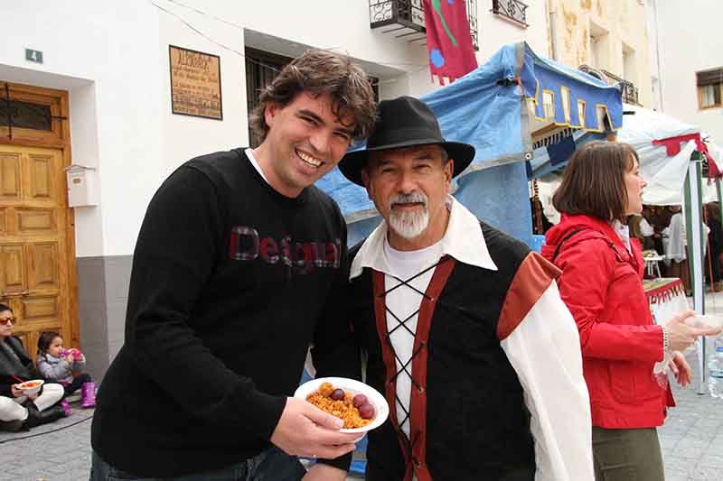 Y mientras el sábado, a parir de las doce de la mañana, el arcoíris lucía sobre las aguas de Entrepeñas, la Plaza Mayor de Pareja, con su nuevo aspecto y firme adoquinado, atractiva y acogedora, congregaba la excelente oferta de los vendedores y el paseo tranquilo del público. Prácticamente todos los parejanos y oriundos se han vestido de medievales para ambientar la feria, y no había una calle en la villa que no albergara la decoración que con gusto exquisito y gran dedicación han fabricado los vecinos. Naturalmente, el alcalde de Pareja, Javier Del Río, recibió a los músicos y a las autoridades que se acercaron a la inauguración de la feria el sábado, vestido de época, como requería la ocasión. “Hay expectación, todo el pueblo ha preparado con mucha ilusión esta III Feria Medieval. Basándonos en la experiencia de las dos ediciones anteriores, hemos potenciado lo que hacíamos bien, y cambiado aquellas cosas que no habían salido como queríamos, de manera que tanto el programa de actos como la presentación de la feria este año son magníficos, e incluso mejores que en el pasado”, valora Del Río.