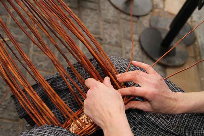 Tres artesanas de la Escuela de Folklore de Guadalajara también mostraron al público los oficios típicos de nuestra provincia que enseñan habitualmente en sus clases capitalinas, pero en esta ocasión bajo los soportales de la Plaza. Una de ellas era la profesora de Cestería, Berta Bugallo. Ante la atenta mirada de los niños, fabricaba una cesta de mimbre para las setas. “primero tejo la parte de abajo, el culo, después las guías que dirigen la forma y luego subo tejiendo, lo que se llama echar la mano”, explicaba. La Escuela adquiere los mimbres precisamente de la vecina Alcarria conquense. A su lado estaban Margarita García, profesora de Indumentaria y Labores Tradicionales y María Luz, Vaillo, que lo es de Restauración y de Labores Tradicionales. Javier Del Río, en su valoración, ha agradecido el trabajo de los artesanos y artesanas de la Escuela de Folklore de la Diputación “en todas las ediciones de nuestra feria, y naturalmente también en esta” y el apoyo constante de la institución provincial desde la gestación de la iniciativa, hasta la presente edición.