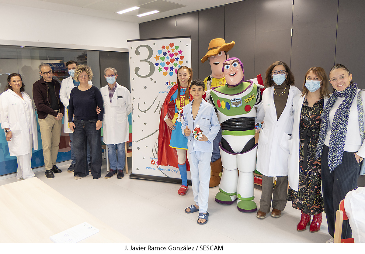 Representantes de la Asociación de Familias de Niños con Cáncer de Castilla-La Mancha (AFANION) acudieron al centro hospitalario acompañados de personajes de la película Toy Story y ‘Acepina’, la mascota de la Asociación de Comercios y Empresarios de Azuqueca (ACEPA), quienes sorprendieron a las niñas y niños ingresados con un gesto cargado de emoción.