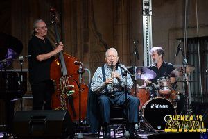 Escudado por Mariano Díaz al piano, Richie Ferrer al contrabajo, Daniel García a la batería y armado tanto con su clarinete como con su saxofón, Iturralde deleitó a los asistentes con un amplio y variado repertorio, acordándose en algún interludio del ensemble de saxofones al que acudió en la mañana del miércoles, donde la Escuela de Música Municipal de Cuenca ‘Ismael Martínez Marín’ le realizó un concierto como homenaje. También aprovechó el espacio entre tema y tema para cantar alguna que otra canción a un público que sonreía al escuchar cómo interpretaba las distintas letras transformadas en notas musicales. “Yo es que las canciones las canto así”, se disculpaba con una sonrisa el artista.