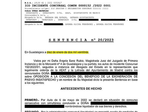 Esto es lo que permitió a nuestro protagonista solicitar al Juzgado de Guadalajara el perdón de sus deudas, incluyendo la deuda pública y un plan de pagos para la parte “no exonerable” de la misma. Esto fue resuelto el pasado 10 de enero de 2023 por el tribunal concediendo el beneficio a los deudores.