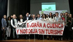 El recién nombrado presidente de Nuevas Generaciones también ha aprovechado su intervención para denunciar “la gran traición del Gobierno de Page a la provincia de Cuenca, negándole el Grado de Turismo al Campus conquense de la Universidad de Castilla-La Mancha”. Como símbolo de protesta, los jóvenes del PP han desplegado una pancarta criticando el engaño de Page a los jóvenes conquenses, “impidiendo que Cuenca, una Ciudad Patrimonio de la Humanidad, tenga el Grado de Turismo en su campus universitario”.