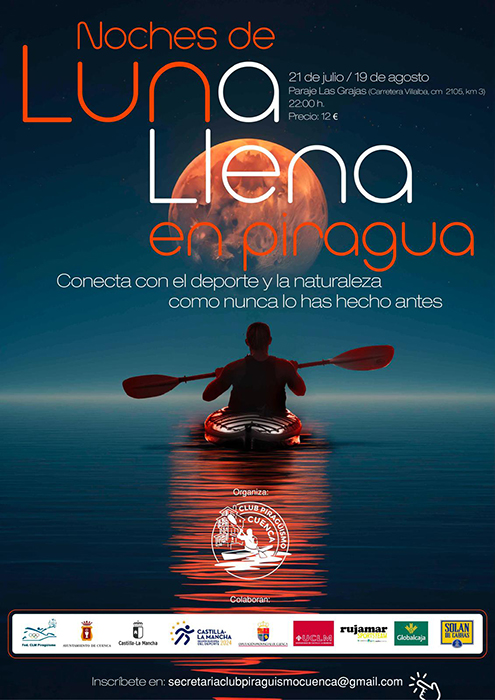 Para apuntarse a la actividad del plenilunio del 21 de julio o del 19 de agosto, basta con mandar un correo electrónico a: secretariaclubpiraguismocuenca@gmail.com especificando el número de participantes y la fecha seleccionada. Debido a la alta demanda que tiene esta iniciativa se respetará el orden de inscripción hasta completar aforo.