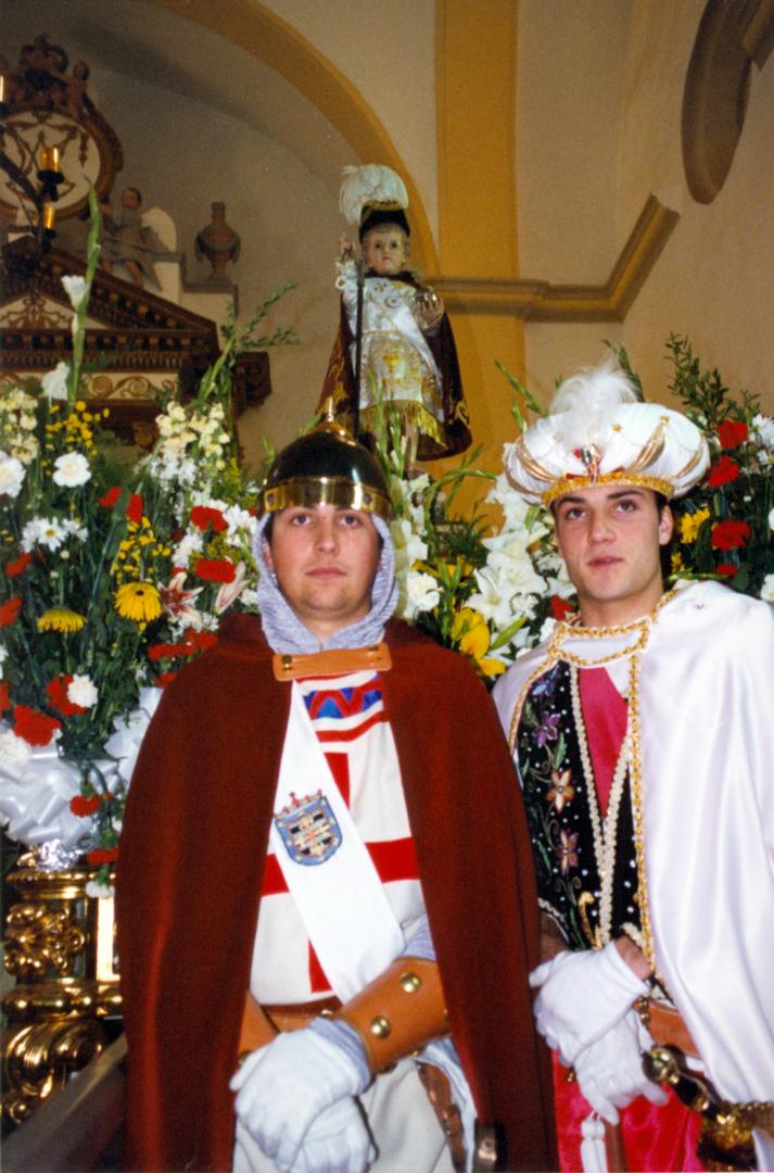 mini 05 valverde sto nino0052Los sonidos de tambores y trabucos anuncian la presencia de la tropa cristiana, con sus mandos y general de dichos aquí en la Plaza Mayor. Se acerca el momento del inicio del acto más importante de las fiestas: Los Dichos. Víctor Larroda es el ‘dichero’ de los cristianos y está tranquilo. Lleva más de un mes ensayando los textos del Auto de Moros y cristianos en honor al Santo Niño, y aunque sabe que la emoción le puede apretar el corazón, espera poder transmitir a ‘todos’ la carga de sentimientos que los versos que recite tienen.