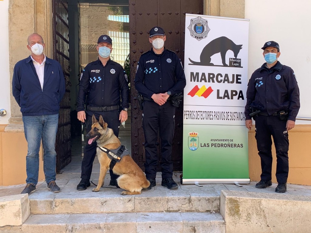 La Policia Local de Las Pedroñeras presenta este nuevo servicio que se desarrolla bajo el sistema de trabajo ‘marcaje lapa’, que consiste en que cuando el perro detecta una sustancia prohibida la marca, al mismo tiempo que se sienta o se tumba.