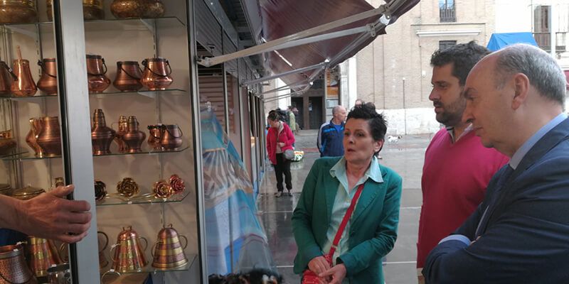 El representante de la institución ha visitado la feria acompañado de Cinta Caro, vicepresidenta de la Asociación de Artesanos de Guadalajara (AIDA) y del diputado de Turismo, Jesús Parra.