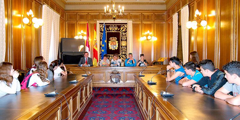 Los algo más de cuarenta estudiantes, que han venido acompañados de varios profesores, han recorrido la parte noble del Palacio, pudiendo conocer desde el Salón Azul hasta el Salón de Plenos, pasando por las distintas obras de arte existentes en los pasillos, como la escultura de Marco Pérez de La Abuela Serrana, el mural sobre la provincia de Víctor de la Vega o el cuadro sobre la Reconquista de Cuenca, obra de Benito López Chust.