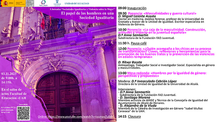 La Facultad de Educación de la Universidad de Alcalá (UAH) acogerá este viernes, día 3 de noviembre, las I Jornadas Sociedades Igualitarias y Violencia sobre la Mujer, organizadas por la Unidad contra la Violencia sobre la Mujer de la Subdelegación del Gobierno de España en Guadalajara, en colaboración con la propia universidad, con motivo del 25-N, Día Internacional de la Eliminación de la Violencia contra las Mujeres. Esta actividad es la primera que se enmarca en el reciente protocolo en materia de igualdad y lucha contra la violencia sobre las mujeres suscrito entre la UAH y la Delegación del Gobierno en Castilla-La Mancha.
