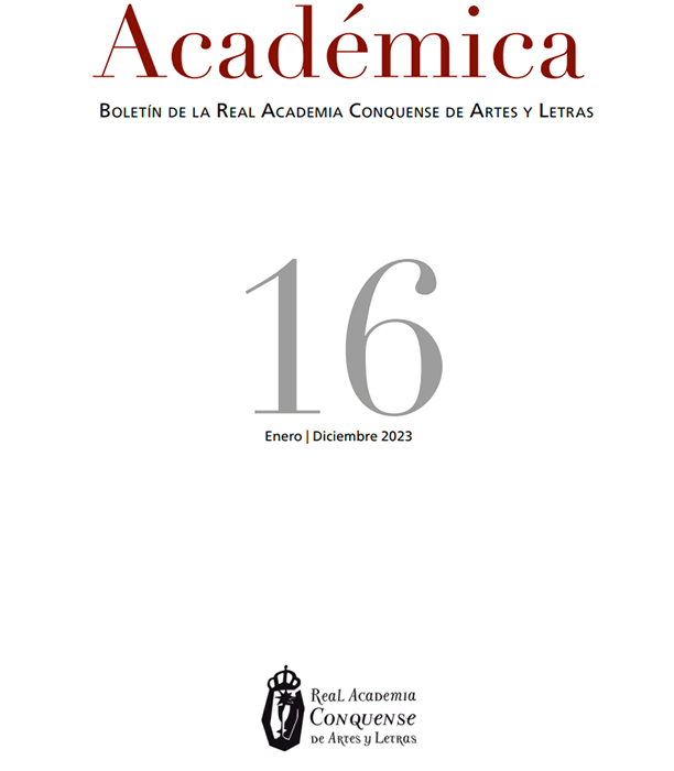 Datos para un estudio de la actividad cultural en Cuenca desde 1975 a 2011” el detallado repaso que a lo largo de los últimos números de la revista viene llevando a cabo el escritor, periodista y numerario de la RACAL José Ángel García de la agenda cultural de Cuenca desde el final de la Dictadura hasta la primera década de nuestro actual siglo, en concreto en esta ocasión la correspondiente al periodo comprendido entre 1996 y 2007. La entrega se completa con el habitual apartado “Vida académica” en el que se repasa pormenorizadamente la actividad tanto de la propia Real Academia conquense –conferencias, presentaciones de libros, colaboración con otras instituciones y colectivos, publicaciones– como a nivel personal de sus integrantes a lo largo del año 2023.