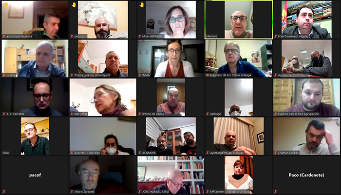‘Pueblos con el Tren’ ha celebrado esta tarde su primera reunión oficial en la que ayuntamientos, plataformas, asociaciones y colectivos han acordado los pasos iniciales que van a seguir en el que será el principal objetivo de esta agrupación, que el ferrocarril de la línea convencional Madrid-Cuenca-Valencia no solo no desaparezca, sino que mejore su servicio. En estos pocos días de vida que lleva la agrupación, una semana escasa, ya ha congregado a más de 30 integrantes, lo que, a juicio de los portavoces, “demuestra la importancia que tiene el tren para las ciudades y, sobre todo, para los municipios pequeños, para el mundo rural”.