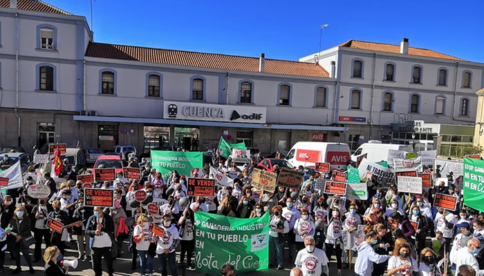 La Asociación Pueblos Vivos Cuenca ha convocado el próximo domingo 13 de noviembre a las 12.00 horas una manifestación en la capital conquense para denunciar que la moratoria a las macrogranjas porcinas no ha servido para nada. Bajo el lema Moratoria fraudulenta, Cuenca sigue en venta, la marcha partirá desde la estación de tren tradicional ubicada en la calle Mariano Catalina y concluirá en la plaza de España.
