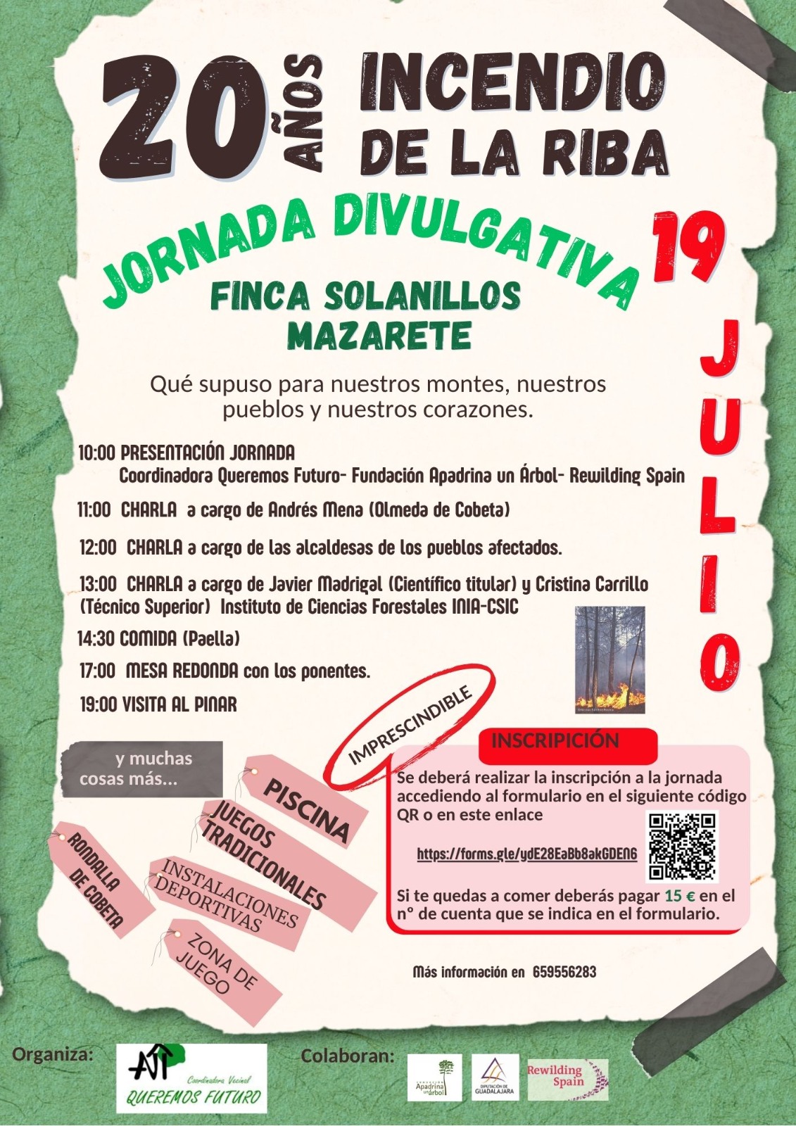 Queremos Futuro organiza una jornada divulgativa cuando se cumplen 20 años del incendio de La Riba