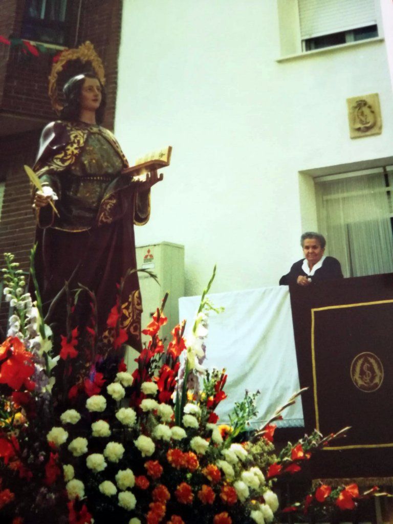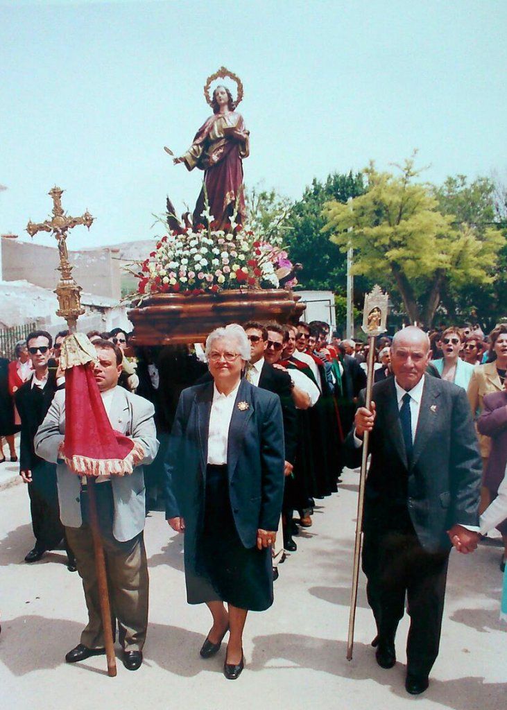Teresa, a causa de una herencia que le dejara su abuela, Quiteria, ha puesto una mesa a pocos metros de La Chopera. Solo faltó el año en el que murió su madre y le apena no poder lanzar vivas porque no tiene voz: pero me acongoja verlo. Me voy a quedar aquí abajo si es que lo supero porque la emoción empieza con el mes de Mayo y, hoy, está que ahoga me dice junto a Rafael, Quiterio, que ni pestañea: este no es mi Juan que me lo han cambiao. Me gustaba más la otra imagen. La que iba sentao en un águila. Ahora va de pie, los jóvenes se han acostumbrao a verlo y, ¿qué? Pues que este no es mi Juan y, claro,lo que pasa. Nos va gustando porque cuando ves muchas veces una cosa, le coges cariño. Es así. Lo malo de esto es que como mi mujer es Juanista, pues ha hecho a los chicos Juanistas. Tenía que haber partido la carga. Mitad Juanistas y mitad Quiterios. Pero no.