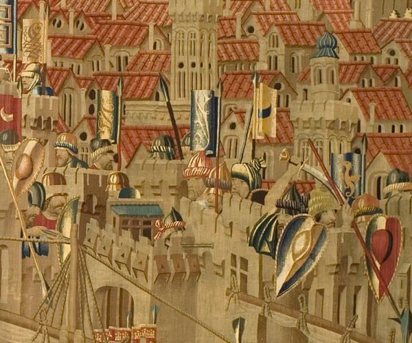 Arriba, en lo que sería una gran sacristía, se encuentra el museo parroquial e n donde, además de joyas de orfebrería se encuentran los famosos tapices: aquí hay un conjunto de tapices, principalmente estos seis, que son unas batallas que dio Alfonso V, rey de Portugal, en el norte de África. Todos son batallas de este rey en África. Hay tres batallas, “La conquista de Tánger” que es uno de los tapices que faltan, “La conquista de Alcázar Seguer” que es de los más estropeados, y “La conquista de Arcila”. La de Tánger es un solo tapìz y la de Arcila son tres tapices (aproximación, cerco y entrada a Arcila). Hay otros tres más secundarios que son buenos, pero que no son de la categoría de estos. Son de una grandeza extraordinaria porque casi llegan a los cincuenta metros cuadrados cada uno de ellos. Fíjate cómo serán que, cada metro cuadrado de uno de ellos, se consideraba como el trabajo que, un hombre, llevara a cabo en un año. Son tapices del año 1474 extraordinarios en los que, los personajes principales, son auténticos retratos. Por eso podemos decir, sin ningún rubor, que ésta es una de las mejores colecciones no ya de toda España, si no del mundo entero, concluye don Licinio al que le pregunto si duerme tranquilo con todo lo que vemos por aquí, y que ahora callamos por precaución: esta misma pregunta me la hizo, hace años, el ministro López Bravo. Pasó por aquí y me dijo lo mismo, sí. Uno se acostumbra a todo pero se pasas ciertos apuros. Tenemos todos los medios de alarmas y, sí, está protegido. Estamos con el susto, la incertidumbre de que si funciona o no y siempre nos queda la duda. Es una amenaza constante, responde entre risas el párroco.