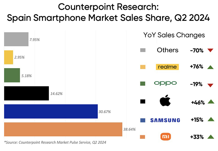 realme, la marca de smartphones que más rápido crece del mundo, ha logrado un hito notable en el mercado español, asegurándose el Top 5 entre las marcas de smartphones en España, según los últimos datos del segundo trimestre de 2024 de Counterpoint.