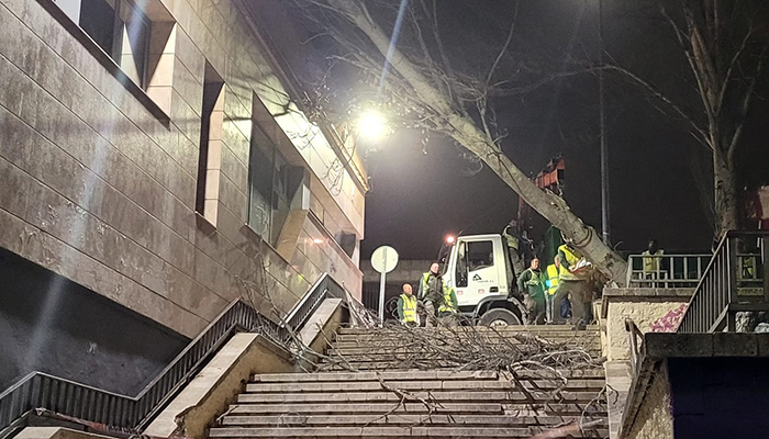 También, en este caso de la mano de Parques y Jardines, la retirada de un gran árbol que cayó en la noche de ayer sobre las escaleras de la Plaza del Romero, afectando incluso al edificio colindante, así como alguno más en el Paseo Fluvial, que una vez despejado ha quedado reabierto.