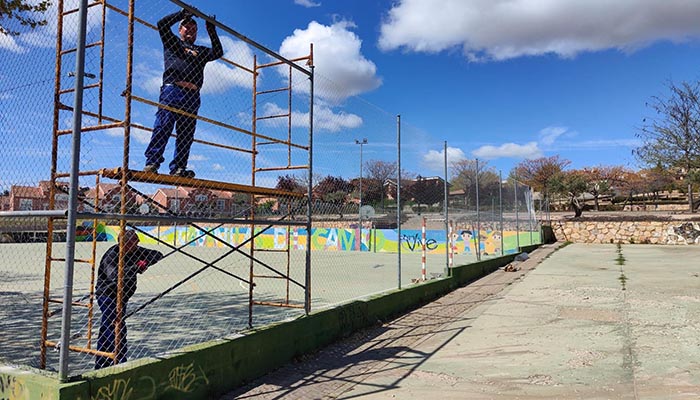 Los trabajos comenzaron el miércoles 20 de abril y finalizan este jueves 21. La renovación de esta valla supone una inversión municipal de 3.400 euros, para un trabajo que ha sido realizado por la empresa especializada Mallas Castilla, de Cabanillas del Campo.