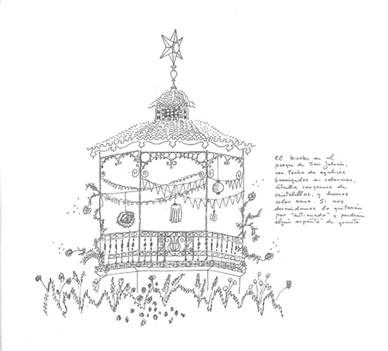 En estos tiempos en los que está tan mal visto prohibir, al menos se deberían limitar este tipo de eventos. De momento, no permitir los que sean invasivos, como lo son todos los anteriormente citados, y recuperar otros, como la actuación de las bandas de música en el Quiosco (para evitar las sospechas del pintor Fernando Zóbel, dibujo adjunto), la fiesta del árbol o los guiñoles para niños con esos muñecos inolvidables como el Chupagrifos de mi infancia.
