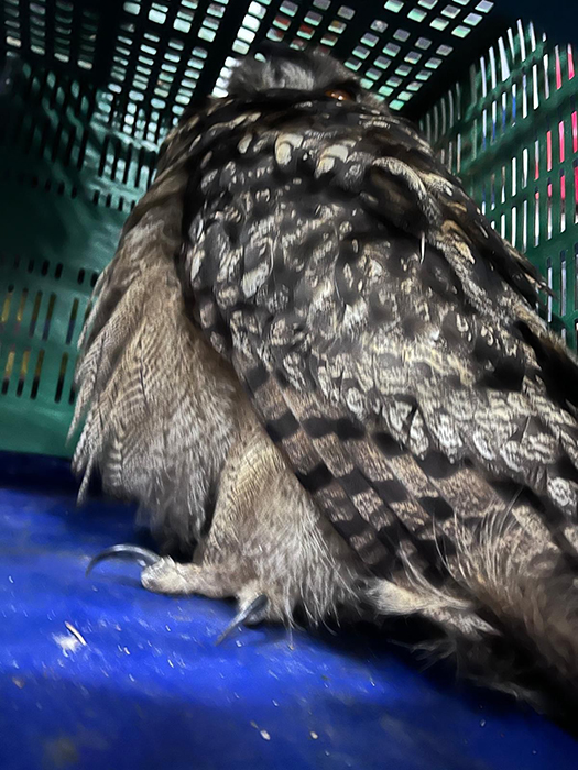 El equipo de Bomberos del Ayuntamiento de Cuenca ha rescatado esta madrugada un búho real en el Recinto Ferial, tras el aviso recibido por parte de Policía Nacional.