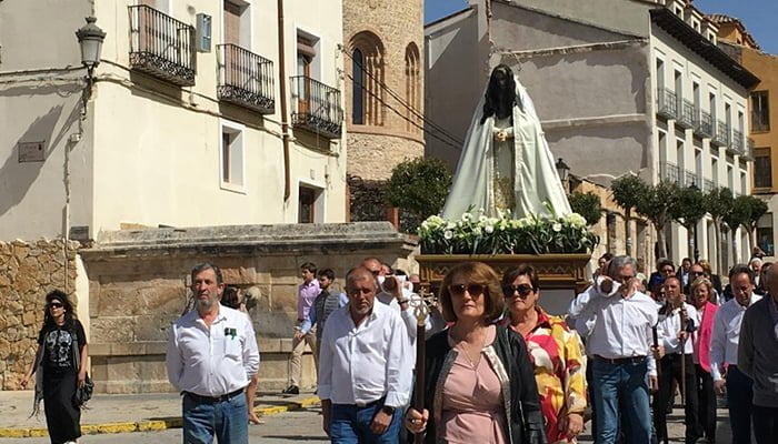 El Domingo de Resurrección tuvimos la procesión del encuentro, (procesión rescatada el pasado año), en la Pl. del Coso con las imágenes del Cristo Resucitado y su Madre la Santísima Virgen, según nos cuentan anteriormente se celebraba en la Pla. de San Felipe, procesión llena de emoción y entusiasmo, y más para los portadores y portadoras de las imágenes, tanto mujeres como hombres, dado que es el segundo año consecutivo después de más de ochenta años sin ella, todo esto en cuanto al tema religioso, que por cierto el templo tanto en los oficios del Jueves Santo como el Viernes Santo, así como la Vigilia del Sábado Santo estaba la Iglesia que no cabía un alma, lo mismo ocurrió en la Eucaristía del Domingo de la Pascua de Resurrección.
