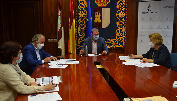 Con la intención de analizar la situación de diversos servicios que el Gobierno regional presta en el municipio de Alovera en materia educativa y sanitaria, el delegado de la Junta, Eusebio Robles, acompañado por la delegada de Sanidad, Margarita Gascueña, y el delegado de Educación, Cultura y Deportes, Ángel Fernández-Montes, ha mantenido una reunión de trabajo con la alcaldesa de dicho municipio, Purificación Tortuero, en la que también ha participado la tercera teniente alcalde, María Jesús Payo.