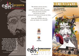 Con el objetivo fundamental de poner en valor las riquezas del turismo rural de nuestra región y nuestro entorno, el Ayuntamiento de San Clemente en colaboración con nuestra Oficina de Turismo y con la colaboración de la Diputación provincial de Cuenca, organiza ‘RURISTUR’, la primera Feria Regional de Turismo Rural de San Clemente. El evento tendrá lugar los días 29, 30 y 31 de marzo 2019 en el recientemente inaugurado EMPE ‘Felipe VI’.