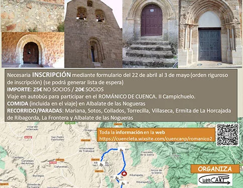 El sábado 4 de mayo se llevará a cabo el II CAMPICHUELO perteneciente al ROMÁNICO DE CUENCA que la Asociación Cultural “CuenCANP” organiza dentro del Programa “Caminos por la Historia”. La INSCRIPCIÓN está abierta desde el lunes 22 de abril al 3 de mayo ambos inclusive.