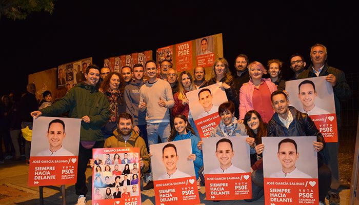 El candidato a la reelección en la Alcaldía de Cabanillas del Campo, José García Salinas, y los integrantes de su lista inauguraron anoche a las doce la campaña electoral del 26M con la tradicional pegada de carteles, que se inició junto al Consistorio y continuó en los barrios de El Mirador y del campo de golf, hasta completar todos los paneles del conjunto del municipio. Con el lema “La Cabanillas que quieres”, los socialistas confían en que estos quince días confirmen las buenas sensaciones que les transmiten los vecinos a pie de calle y que movilicen al voto para respaldar el revitalizador proyecto iniciado en 2015.