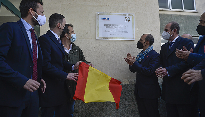 “En reconocimiento y agradecimiento por la dedicación de servicio público, los 365 días del año y las 24 horas al día, prestada por los trabajadores, responsables municipales, Ayuntamientos y administraciones que han hecho posible los 50 años de la Mancomunidad de Aguas del Sorbe”. Este es el texto de la placa que ha sido descubierta este viernes por el presidente de las Cortes de Castilla La Mancha, Pablo Bellido; el presidente de la MAS, José García Salinas y el representante de los trabajadores de la mancomunidad, Agapito García, en las dependencias de la Planta Potabilizadora de Mohernando (ETAP) con motivo del 50 Aniversario de la institución. En palabras de García Salinas, este mensaje de agradecimiento es el que resume la esencia de los actos celebrados con motivo del medio siglo de vida de la Mancomunidad y en el que estuvo acompañado además de por el presidente de las Cortes regionales por el consejero de Desarrollo Sostenible, José Luis Escudero; el presidente de la CHT, Antonio Yáñez; el presidente de la Diputación, José Luis Vega; la subdelegada del Gobierno en Guadalajara, Mercedes Gómez; los alcaldes de las dos ciudades más pobladas Alcalá de Henares y Guadalajara, Javier R. Palacios y Alberto Rojo, respectivamente; así como de numerosos alcaldes y concejales de los municipios mancomunados; autoridades del ámbito social Guadalajara; ex presidentes de la MAS y trabajadores y ex trabajadores de la casa.