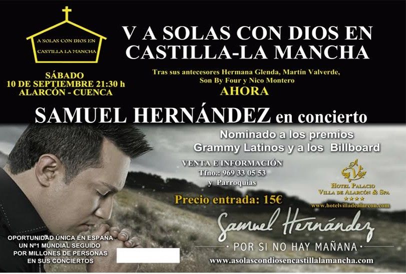 El cantante portorriqueño Samuel Hernandez actuará el próximo 10 de septiembre en la quinta edición del espacio de música cristiana “A Solas con Dios en Castilla-La Mancha” , que un año más se celebrará en los jardines del Hotel Palacio “Villa de Alarcón”.