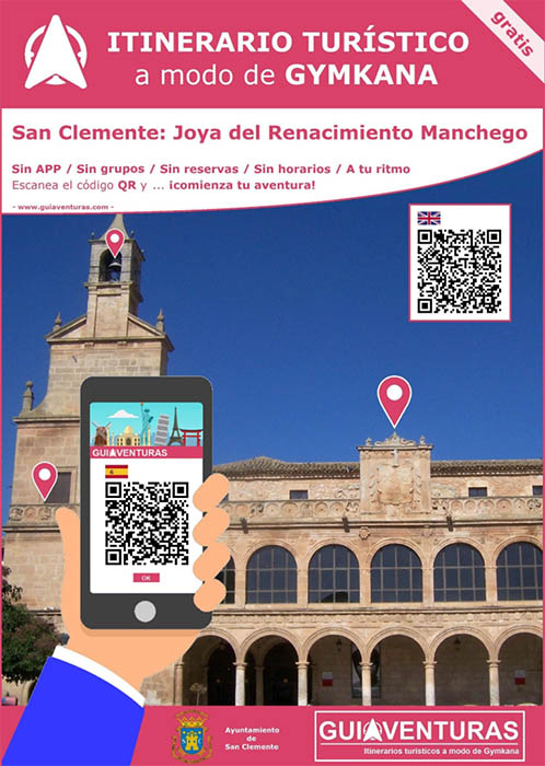San Clemente presenta una Gymkana TurísticaDe la mano de www.guiaventuras.com, empresa dedicada a crear productos innovadores para el sector turístico, el Ayuntamiento ha lanzado una gymkana turística digital que nos hará recorrer el municipio mientras conocemos su historia y patrimonio. Para poder disfrutar de esta innovadora experiencia tan solo necesitamos un teléfono móvil y ganas de aprender y disfrutar. No hace falta hacer reservas, ni formar grupos, ni ajustarse a horarios, además la actividad es gratuita.