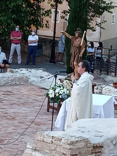 Ahí todos los años se celebran los actos religiosos en honor al Santo, la Santa Misa y la procesión por las calles del Barrionuevo Alto y Bajo, como la Calle Cozagón, la Estrella, hasta la Parroquia, siempre el Santo titular del barrio es acompañado por el pueblo y la Banda de Música, tanto la Municipal como la Filarmónica. Como estaba anunciado en los restos de la Iglesia se entronizo al Santo y a una imagen de la Virgen de la Peña y D. José Félix, procedió a la celebración de la Eucaristía con una sencilla plática dándonos a conocer quien fue el predecesor de Cristo. La pandemia nos han roto las costumbres.