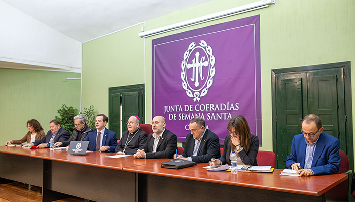 La Junta General concluía con la intervención del obispo de la Diócesis, monseñor José María Yanguas, quien describía las procesiones como “una especie de Evangelio escenificado, de proclamación del Evangelio, al menos de la parte final, que es la que tiene que ver con la Muerte y Resurrección del Señor. Las procesiones son como flashes de esos momentos de los que el Evangelio es la manifestación escrita y las procesiones, representada. Imágenes y palabras son signos de algo que se transmite, que se comunica”.