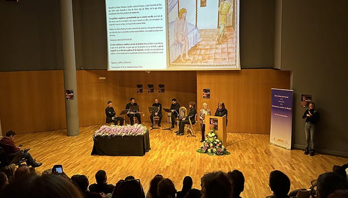 El acto ha contado en su inicio con una actuación a cargo de la Escuela Superior de Arte Dramático de Castilla-La Mancha y ha finalizado con una lectura de poemas por Luz González y María Luisa Chico, su autora, mientras se proyectaban imágenes tomadas del Archivo Provincial de Cuenca que muestran que la violencia de género viene de siglos atrás.