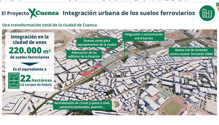 Otro de los aspectos calientes del Proyecto XCuenca es el referente a los terrenos que Renfe tiene en Cuenca capital. En total, 220.000 metros cuadrados de suelos ferroviarios o lo que es lo mismo, 32 campos de fútbol.