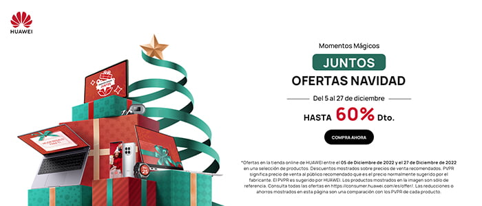 Huawei CBG prepara, para estas navidades, el regalo que tanto buscabas. Si todavía no has encontrado el regalo de navidad perfecto para tus seres queridos, aquí puedes encontrar diferentes ofertas especiales de Navidad y Reyes, para todos y a todos los precios. Estas ofertas incluyen una amplia selección de productos, desde PCs, smartphones, smartwatches, dispositivos de audio, etc. Disponibles desde el hasta el 5 hasta el 27 de diciembre de 2022.