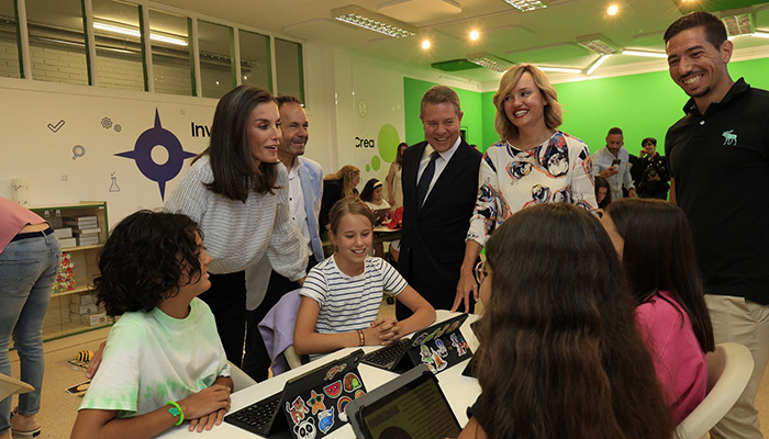 Tras los saludos, Doña Letizia inició su recorrido por el centro, en el que visitó el Aula del Futuro (alumnos de 6º de primaria) y el Aula mágica/biblioteca (alumnos de 3º de Educación Primaria).