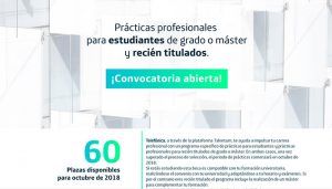 Telefónica quiere contar con 60 jóvenes que se formarán durante seis meses en sus instalaciones gracias a las becas remuneradas Talentum, para captar y desarrollar talento joven. Se trata de recién titulados y estudiantes universitarios de grado y máster, con interés en el mundo digital, especializados en Ingeniería de Telecomunicaciones, Ingeniería Informática, Matemáticas, Física, Ingeniería Industrial, Administración y dirección de Empresas, Marketing, Publicidad, Comunicación audiovisual, Periodismo, Derecho y Diseño gráfico entre otras disciplinas.