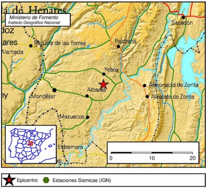 El terremoto que se ha registrado a las 05:28 de esta madrugada con epicentro en Yebra, a una profundidad de 11 kilómetros, ha sido sentido por vecinos de esta localidad y otras próximas como Almoguera, Pastrana e incluso Guadalajara, aunque no se han registrado daños.