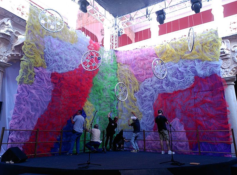 Durante las últimas horas se han llevado a cabo las labores de producción y montaje de los escenarios. Un equipo de alumnos del Grado Superior de Proyectos y Dirección de Obras de Decoración de la Escuela de Arte Elena de la Cruz ha llevado a cabo el diseño de los escenarios del Infantado, inspirados en el tema de esta edición. El escenario del patio de los leones lleva el título de ‘Magic Moon’ y la firma de Leticia Castillo, Gloria Maroto, Mohamed Najmeddine y Sara Isabel Tejeiro; mientras, el del zaguán tiene como título ‘Esencia’ y es obra de ‘Gonzalo Abad de la Fuente, Laura García marcos y Susana Martínez Gamarra.