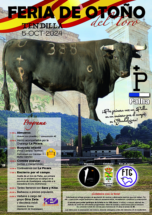 La segunda edición de esta Feria de Otoño del Toro, organizada por la “Comisión Feria Chica” y apoyada por el consistorio municipal, llega repleta de actos al municipio de Tendilla para llenar las calles y el campo de aficionados del mundo del toro y ver en primicia la suelta por primera vez al campo alcarreño de un astado del hierro “Palha”.