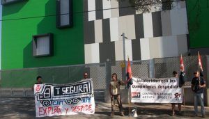 Entre otras, informan, se han llevado a cabo pegadas de pegatinas y carteles por toda la ciudad y en el entorno de los clientes de la empresa. Se han realizado piquetes no sólo en las viviendas de los gerentes de la empresa, sino también en la de sus padres, llegando incluso a acceder al recinto privado de una de ellas y rompiendo el buzón.