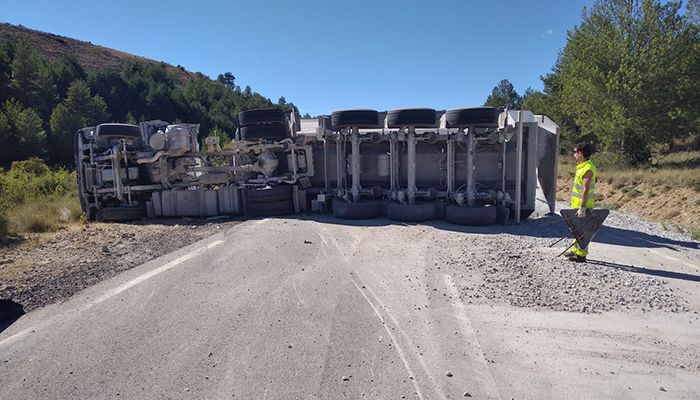 Un hombre de 37 años de edad ha sido trasladado al Hospital Universitario de Guadalajara tras volcar el camión que conducía y que transportaba grava a las 15:54 horas en el kilómetro 16 de la CM-2101.