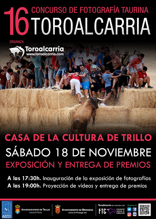 Desde el Ayuntamiento de Trillo, su concejal de Festejos, Sergio Recuero, reconocido aficionado taurino y recortador en activo, anima a acudir a la entrega de premios y a la exposición de ToroAlcarria de este sábado, “porque no es sólo una entrega de premios de un concurso de fotografía, es también un resumen, una forma de disfrutar de forma intensa y condensada de las fiestas y festejos taurinos que se han desarrollado en el último año en los pueblos de Guadalajara”, en sus propias palabras.