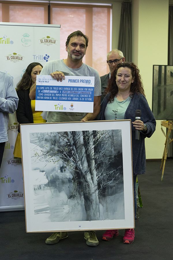 Un lienzo dedicado a las gentes de Trillo en la persona de Maruchi, una mujer muy conocida en el pueblo, realizada por Alberto Fernández Hurtado, se hizo con el Tercer Premio, mientras que el Cuarto recaía en una original vista en blanco y negro de la cascada desde la terraza del Mesón, en la que el autor, Richard García Rodríguez, supo captar los reflejos, contrastes y matices de la cristalera que da cerramiento al establecimiento situado junto al río Cifuentes. El agua, tan omnipresente en Trillo, es la protagonista del trabajo merecedor del Segundo Premio de acuarela, realizado por Pablo Rubén López Sanz.
