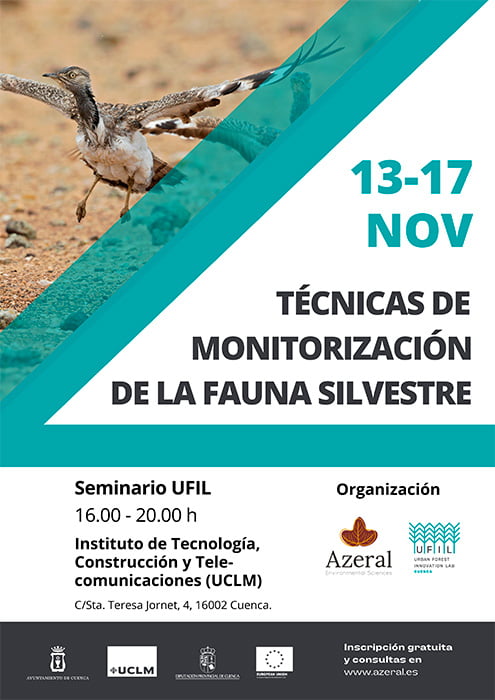 Gracias a los seminarios promovidos por el Urban Forest Innovation Lab (UFIL) en torno a la bioeconomía forestal en el Campus de Cuenca de la Universidad de Castilla-La Mancha (UCLM), el curso “Técnicas de monitorización de la fauna silvestre” será impartido de forma totalmente gratuita entre el 13 y el 17 de noviembre de 2023 en las instalaciones del Instituto de Tecnología, Construcción y Telecomunicaciones (ITct), de forma presencial y en horario de tardes (16.00 – 20.00 h.).