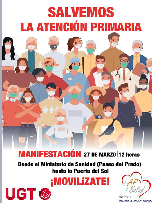 UGT Castilla-La Mancha, como miembro de la Plataforma “SALVEMOS LA ATENCIÓN PRIMARIA”, junto a 115 organizaciones más, saldrá a la calle este domingo para protestar por la situación de la Atención Primaria.