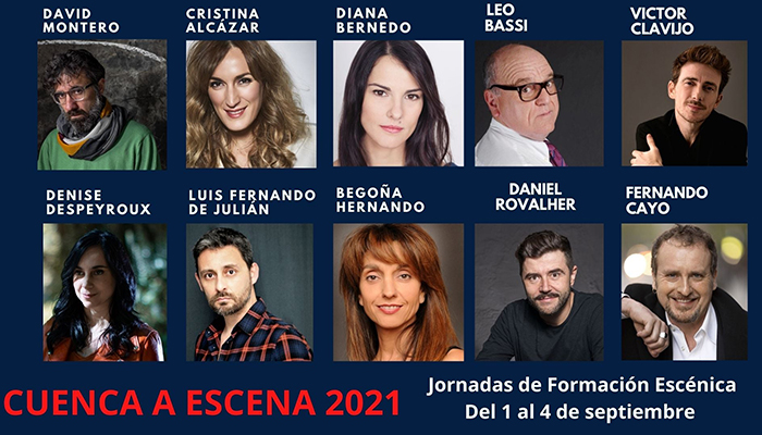 Última semana de matriculación en las IV Jornadas Nacionales de Formación Escénica Cuenca a Escena, uno de los mayores eventos formativos en el ámbito de las artes escénicas que se celebran en España, con diez cursos sobre distintos ámbitos del mundo teatral y cinematográfico impartidos por un elenco de docentes compuesto por Fernando Cayo, Víctor Clavijo, Denise Despeyroux, Leo Bassi, Cristina Alcázar, Diana Bernedo, Begoña Hernando, Daniel Rovalher (Ron Lalá), David Montero y Luis Fernando de Julián.