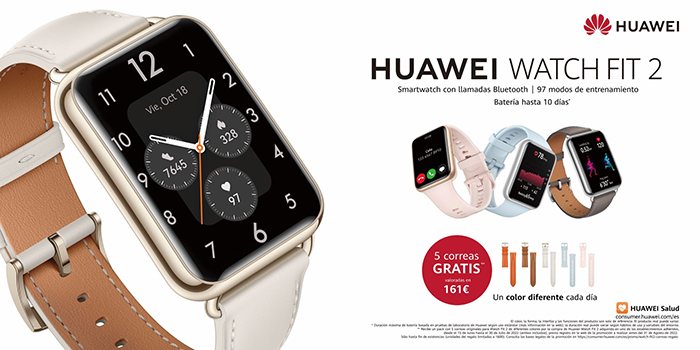 HUAWEI WATCH FIT 2 está disponible desde hoy en Huawei Store y tiendas oficiales Huawei e irá incorporándose a los puntos de venta habituales de la marca con un precio de venta al público de 149€. El dispositivo llega con diferentes colores de correa – Negro, Azul, Gris, Blanco, Rosa, Dorado y Plata.